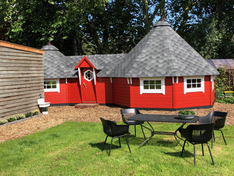 Deze schitterend gelegen en bijzondere vierpersoons Finse Kota (eventueel met Hotttub) staat in het dorp Roderwolde in de kop van de provincie Drenthe. U kunt hier echt genieten van de natuur en de weidse omgeving. Naast het vakantiehuis staat de kleine witte Jacobskerk, gebouwd in 1831. Het Jacobspad gaat langs deze kerk. Een echte blikvanger in het dorp is de grote molen Woldzigt die nog regelmatig in bedrijf is. De molen is in de zomer geopend en er omheen worden vaak activiteiten georganiseerd. In de nabije omgeving zijn er prachtige wandel- en fietstochten te maken.